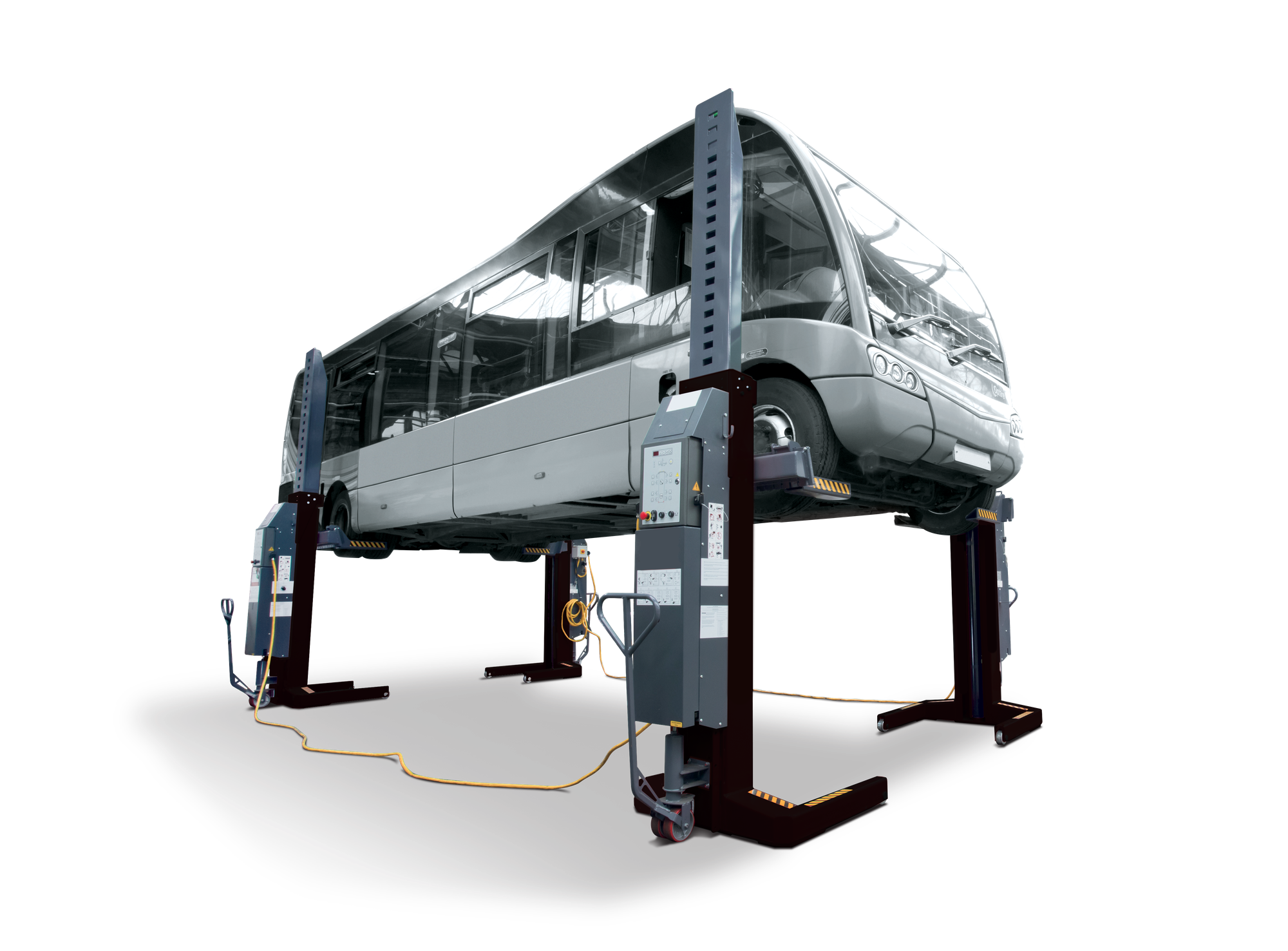 BRADMAC fully wired mobile column lifts are a versatile lifting solution for your workshop. A set of four is capable of lifting vehicles up to 30,000kgs. Features include inverted hydraulic cylinder inside the carriage which protects the chrome piston, fully adjustable lifting forks for smaller or larger vehicles. By wiring the communication between all the posts the costs of manufacture can be kept to a minimum. (Also available in 6 or 8 column sets with wireless communication)