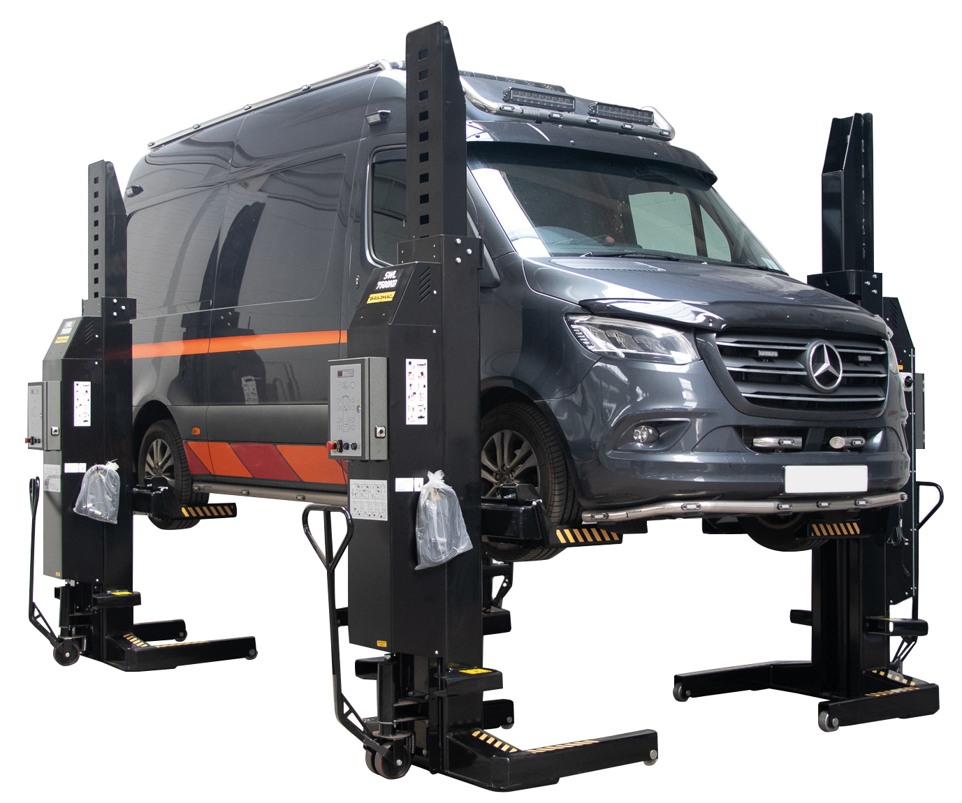 Wireless mobile column lifts are a versatile lifting solution, with each column capable of lifting up to 7,500kg. Usable in configurations of 4, 6 or 8 columns, workshops across the UK benefit from a solution that can lift a wide variety of vehicles, from light commercial vans, buses and coaches, waste & recycling vehicles, heavy goods vehicles, heavy haulage vehicles and more.